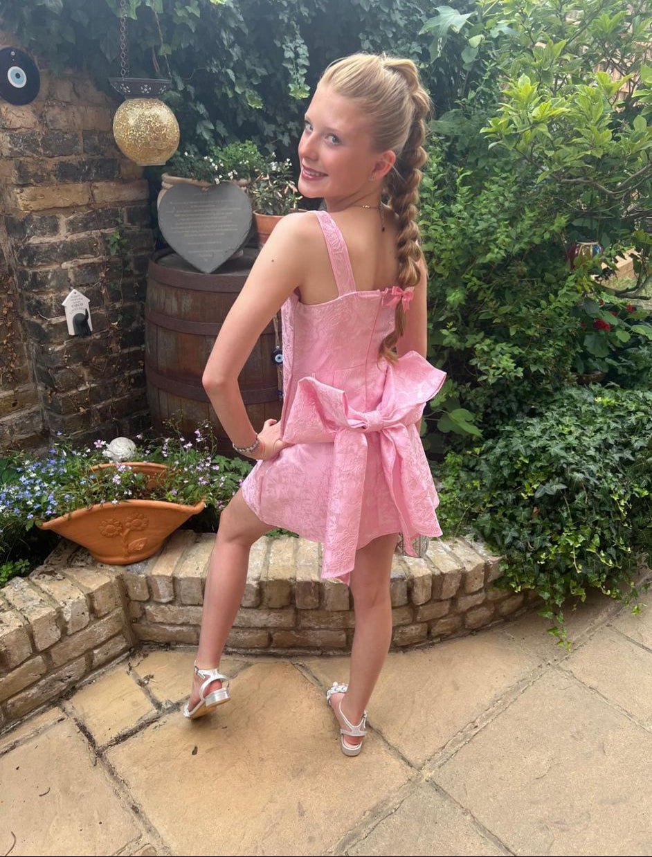 Introducing the Aurora—a sophisticated floral dress that seamlessly blends contemporary design with timeless femininity. The striking square neckline frames the face beautifully, whilst the delicate floral print in soft pink tones creates an effortlessly elegant aesthetic. Crafted from fluid, lightweight fabric, this dress drapes gracefully with every movement. The showstopping oversized bow detail at the back elevates the design, transforming it from everyday wear to occasion-ready in moments. Versatile enough for garden gatherings, brunches, or special celebrations, the Aurora pairs