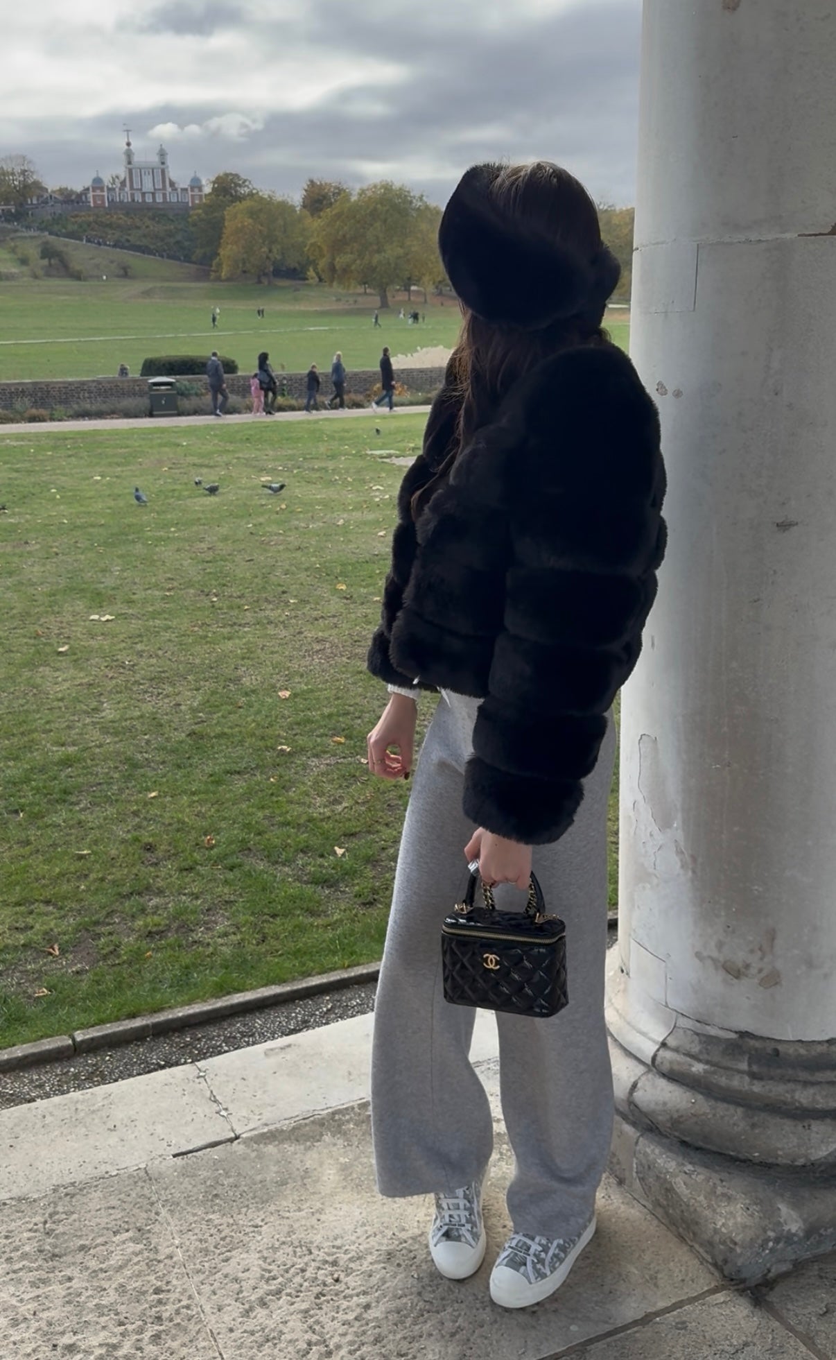 Black Premium Faux Fur Jacket - 5 Row Sleeve