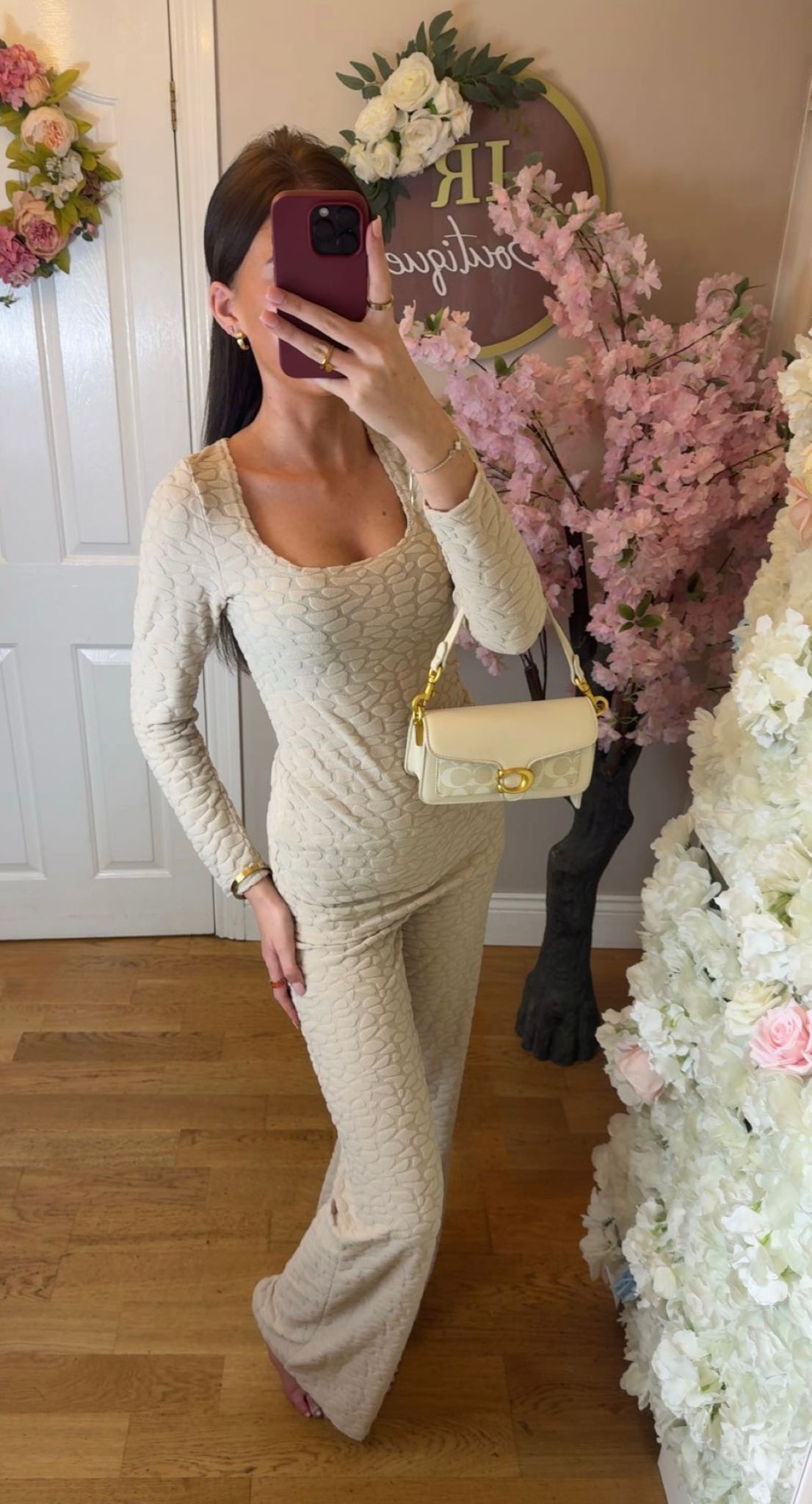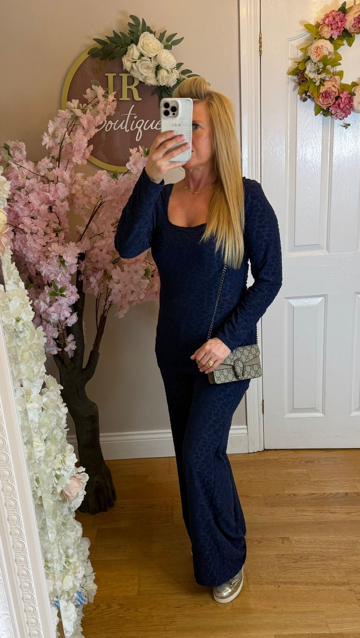 Elevate your loungewear collection with the CONNIE two-piece set, crafted from luxurious toweling fabric that delivers both comfort and sophistication. Featuring an embossed cheetah print, this versatile set combines contemporary design with tactile appeal. The structured toweling construction provides excellent durability and moisture-wicking properties, making it ideal for relaxation at home or casual outings. Available in timeless navy and warm beige, each shade complements a range of personal styles. Perfect as a gift or personal indulgence, the CONNIE set offers effortless elegance with premium finishing touches.