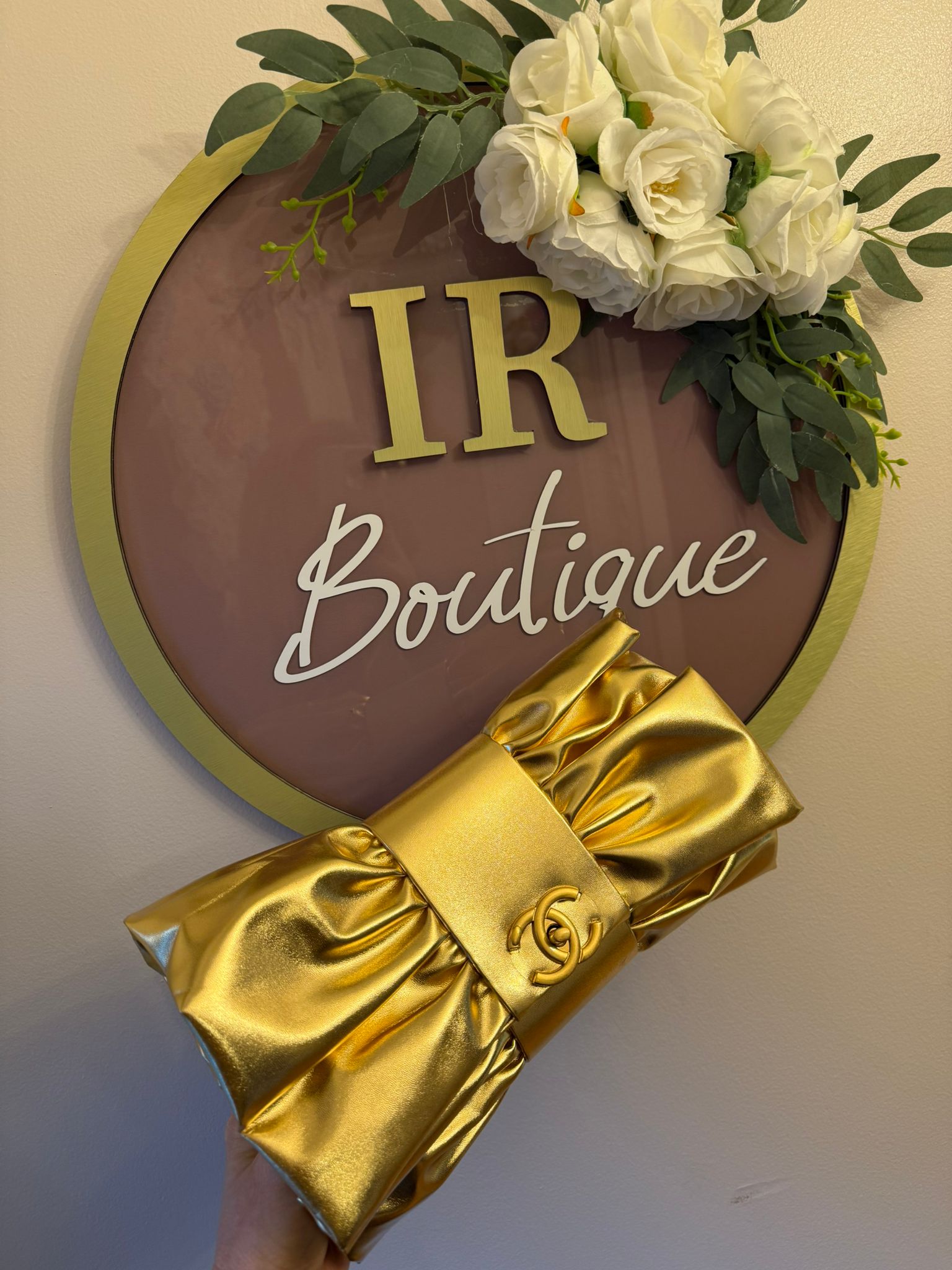 Elevate your accessory collection with the Gold Bow Bag - a sophisticated designer-inspired piece that seamlessly transitions from elegant evening clutch to versatile everyday crossbody style.
