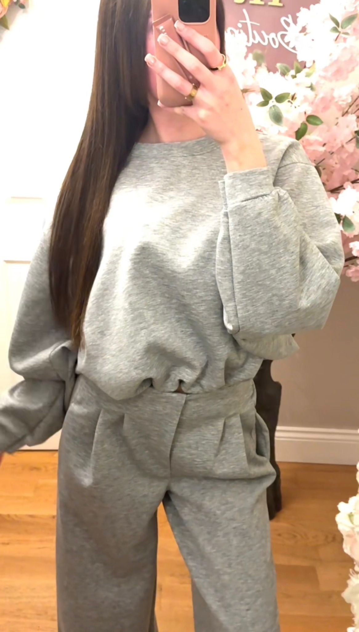 The Tailored Bubble Set is designed for sizes 6-14, featuring pleated trousers with a stretch waistband for enhanced comfort. The bubble hem crew neck top offers a relaxed fit, ideal for both lounging and casual outings. This set combines functionality with a sophisticated design, ensuring versatility in various settings.