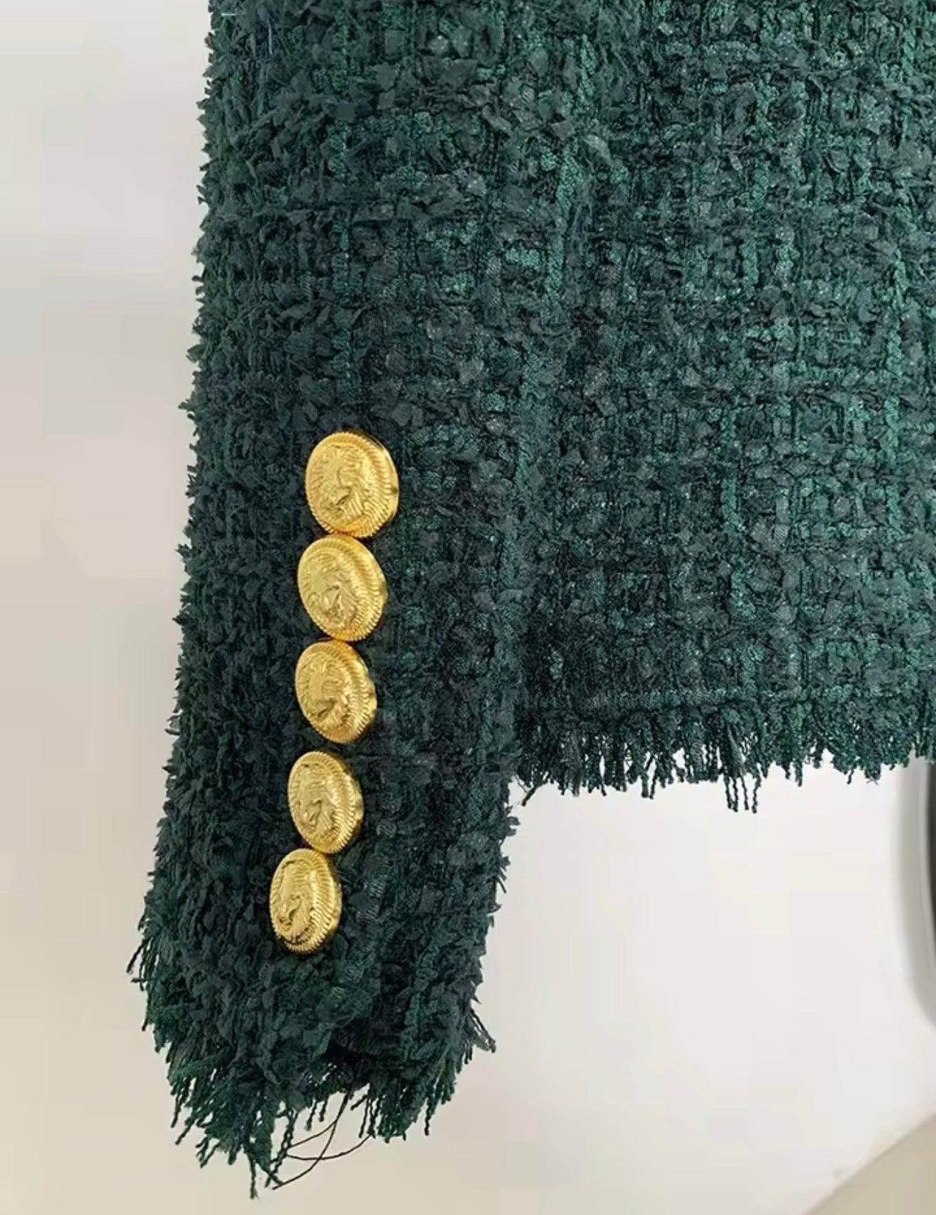 Fitted Green tweed blazer with gold buttons, fully lined